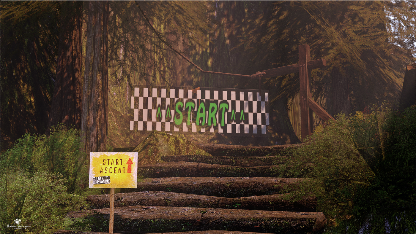 O grande diferencial desse lugar está na proposta interativa. Ao longo do caminho, o visitante encontra desafios e elementos dinâmicos, como rochas que se movimentam e criam pequenas surpresas durante a subida. Esse tipo de interação, que já foi mais comum no passado do Second Life, hoje se tornou raro e é justamente isso que torna a experiência interessante. Há uma clara sensação de progressão: você não apenas caminha, você interage. A presença de pontos como início de ascensão, áreas de transição e até acampamentos reforça essa ideia de jornada, quase como uma pequena aventura dentro da ilha.