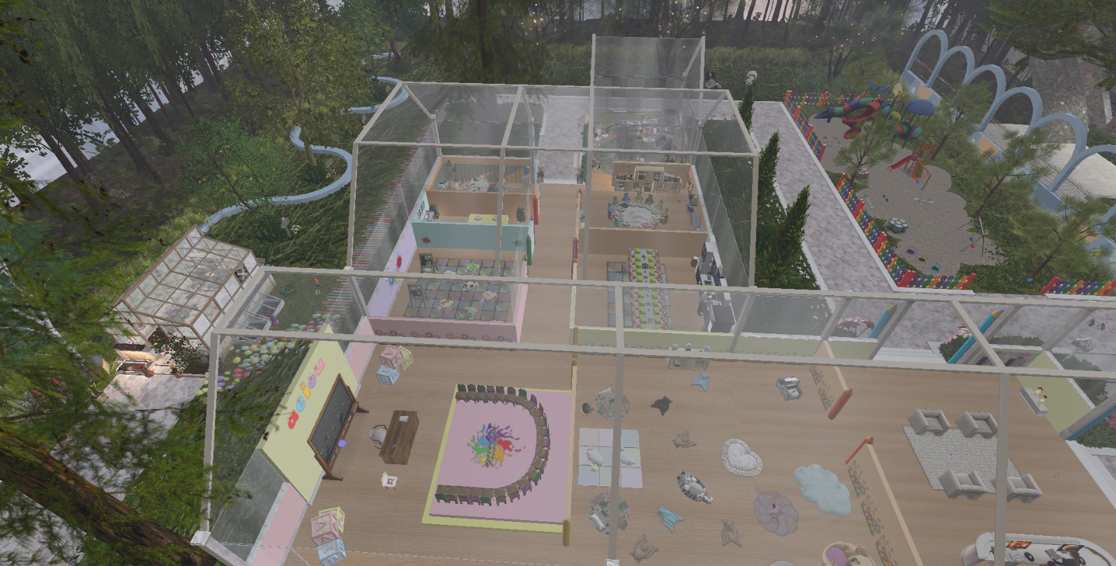 A escolinha Aquarela surgiu do sonho da Pedagoga Luana Pugliesi de realizar um trabalho voluntário dentro do SL para ajudar famílias que gostam de simular uma vida doméstica completa dentro desse metaverso. E assim o sonho foi realizado dentro de um espaço estruturado para o RP familiar.