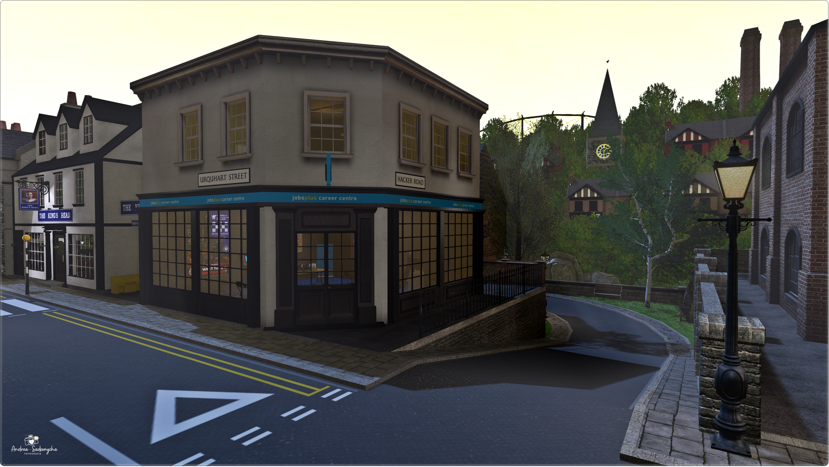 A região central tem uma estética europeia clássica, com casas de pedra, ruas bem definidas e uma ambientação muito coerente.
